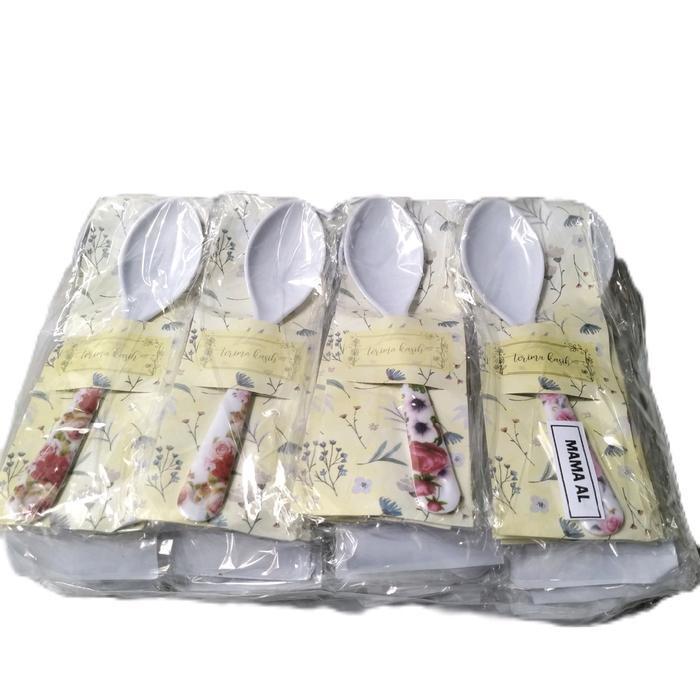 Souvenir Pernikahan isi 50 pcs Sendok Makan Melamin Putih Kemas Alas cantik - - -