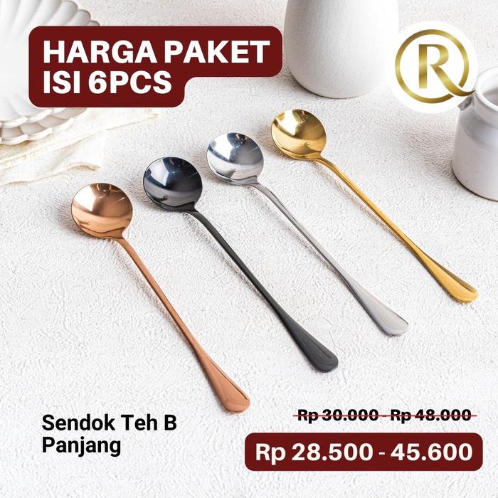 Paket Isi 6pcs Sendok Teh B Gagang Panjang 18.4cm Stainless Steel - Black