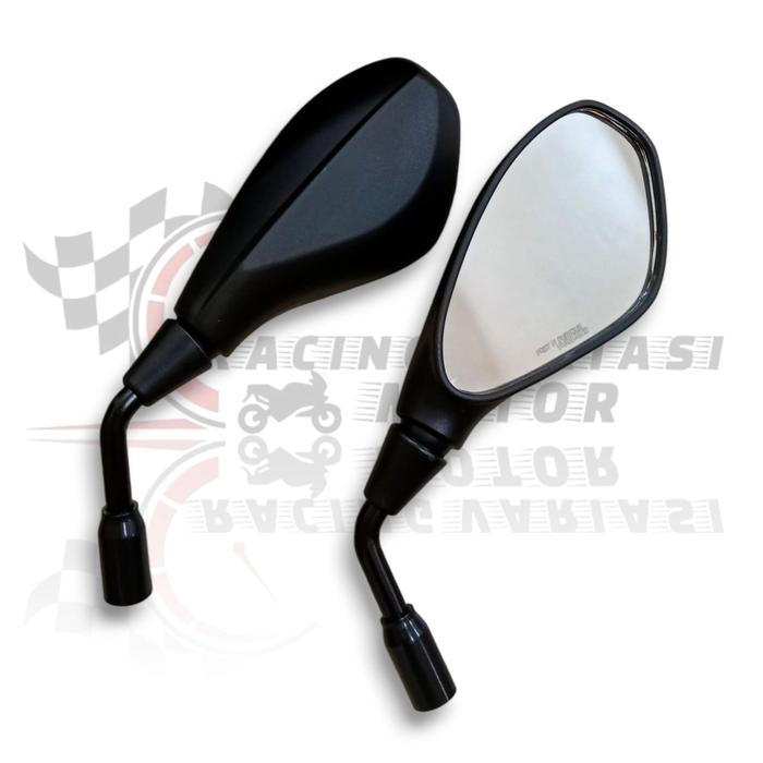 Spion Motor Polos Hitam Tangkai Pendek Honda Yamaha Universal Semua Motor Kaca Bening Datar - PENDEK + DRAT HONDA SPION
