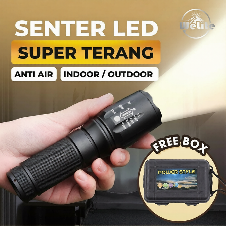 Senter LED WEWANT Super Terang Tactical Waterproof Anti Air Jarak Jauh Zoomable - Senter SWAT Multifungsi Free Charger &