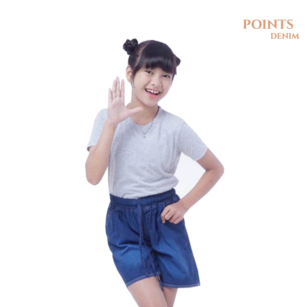 Celana Pendek Anak Perempuan Points Denim - Hotpants Jeans Anak Perempuan Umur 8-12tahun / Celana Pendek jeans Anak