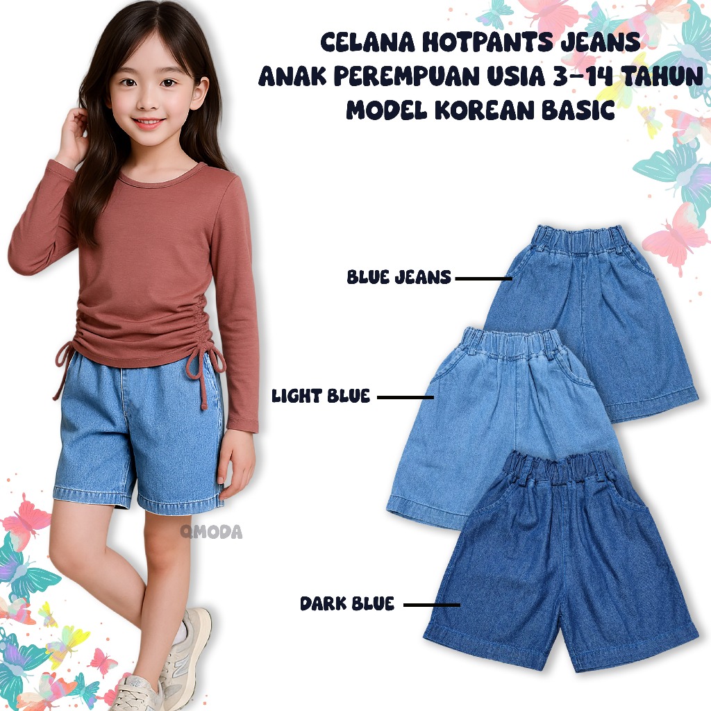 Celana Pendek Anak Perempuan Celana Pendek Jeans Anak Perempuan Tanggung Model Hotpants lucu Usia 3-14 Tahun/Celana Hot