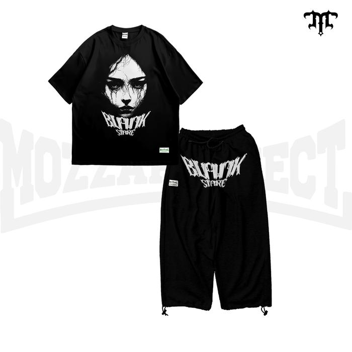 MOZZAPROJECT BUNDLING TSHIRT OVERSIZE HITAM DAN BAGGY BALLON DEAD EYES - HITAM, M