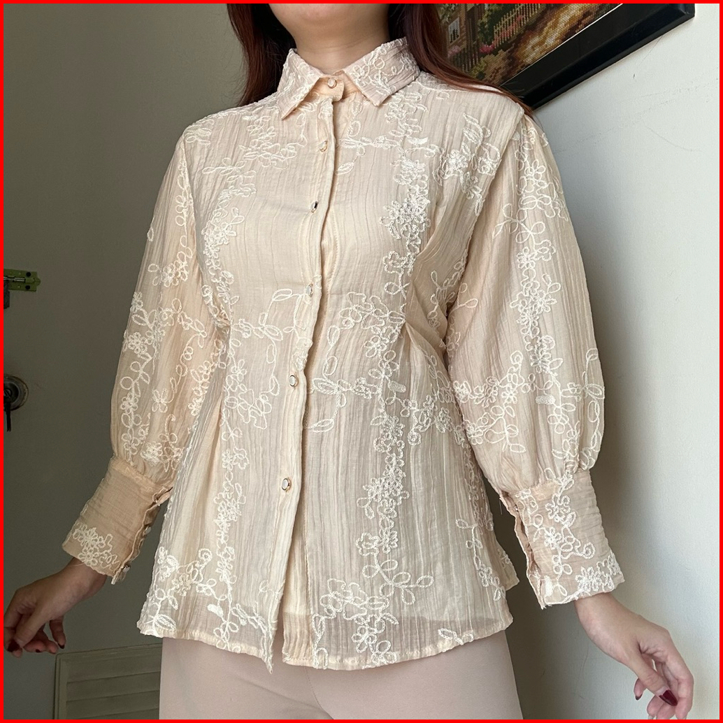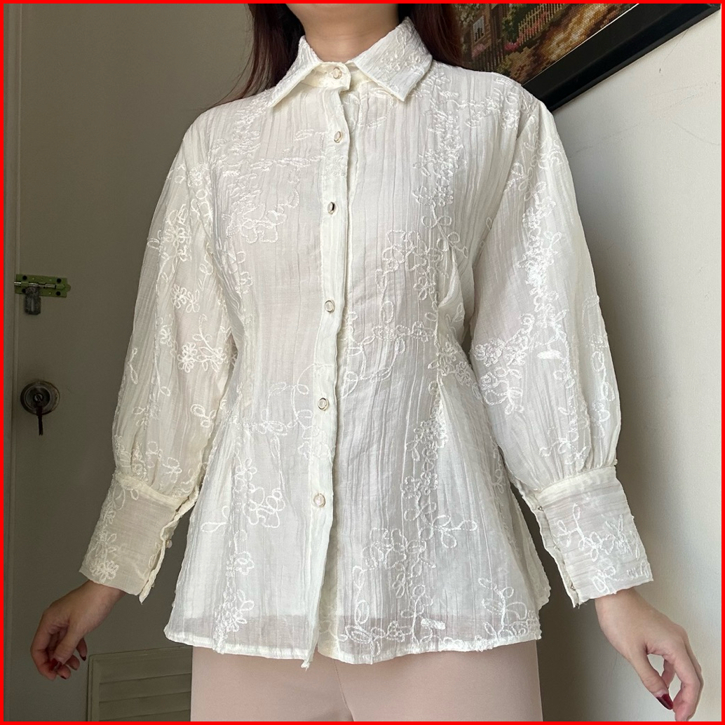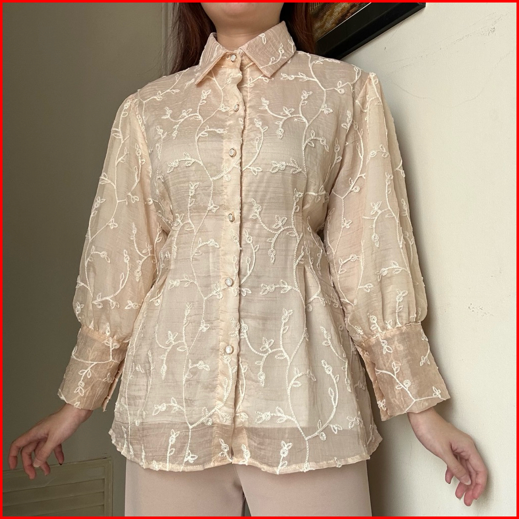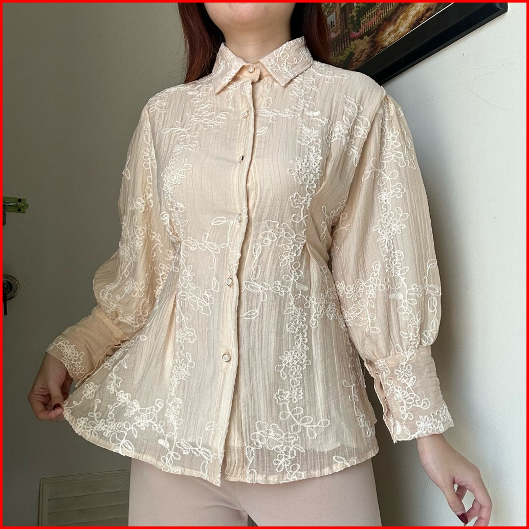 Nirina Top Atasan Kemeja Blouse Wanita Kerja Bordir Full Furing Korean Style By Biel The Label