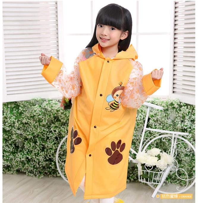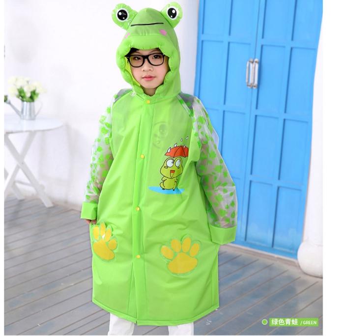 Terlaris jas hujan terusan anak ber kuping lucu dan imut dengan bahan pvc tebal Hijau - pink M Keren