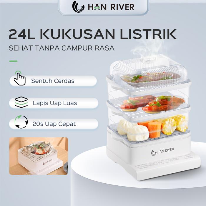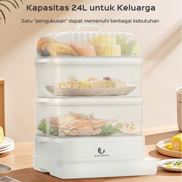 Han River Panci Listrik 3 Tingkat Kukusan Listrik 24L Kukus Dan Masak Seafood/Siomay/Mie/Sayur
