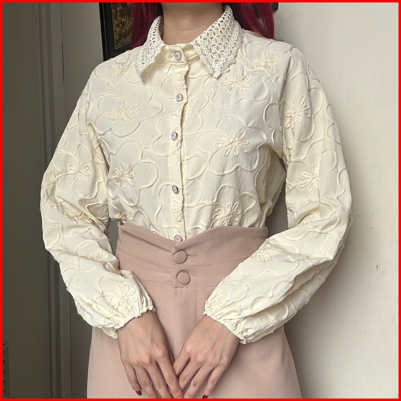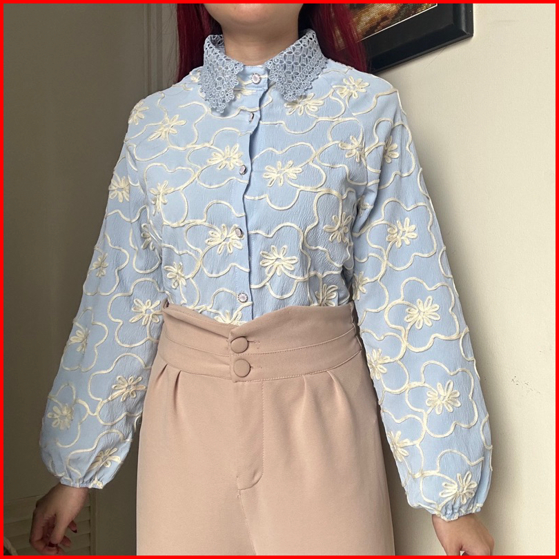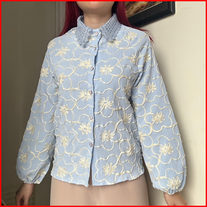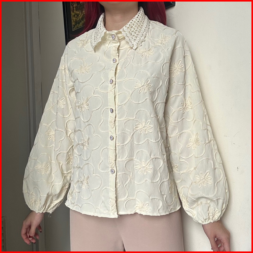 Meisya Top Bkk Blouse Kemeja Atasan Katun Emboss 3d Brokat Renda Korean Style By Biel The Label