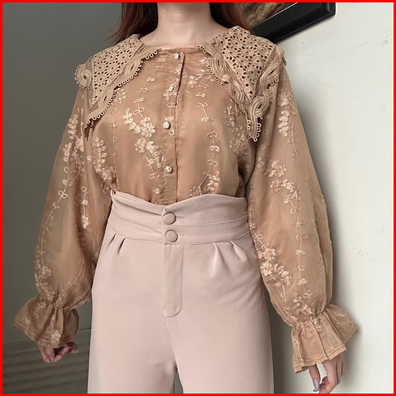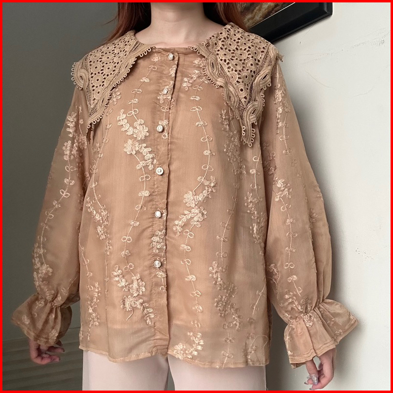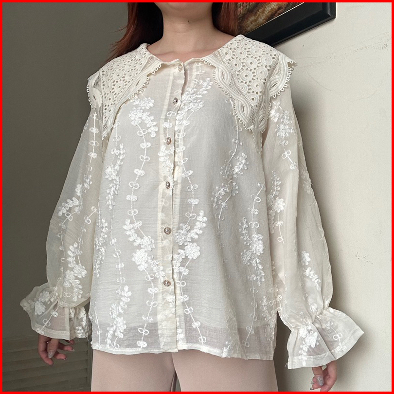 Virly Top Blk Kemeja Blouse Atasan Katun Organdi Bordir Korean Style Wanita By Biel The Label