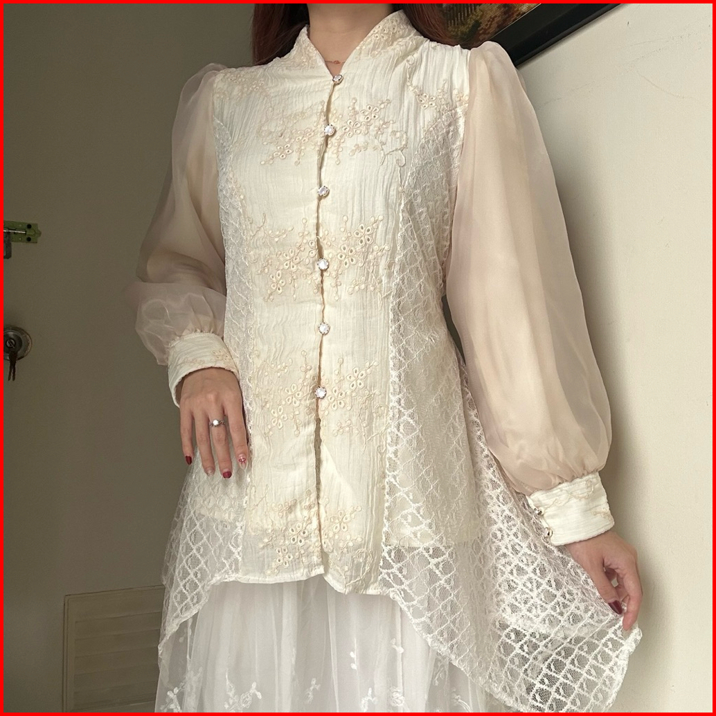 Diandra Top Atasan Blouse Semi Tunik Wanita Baju Viral Kondangan Kebaya Tensel Bordir By Biel The Label