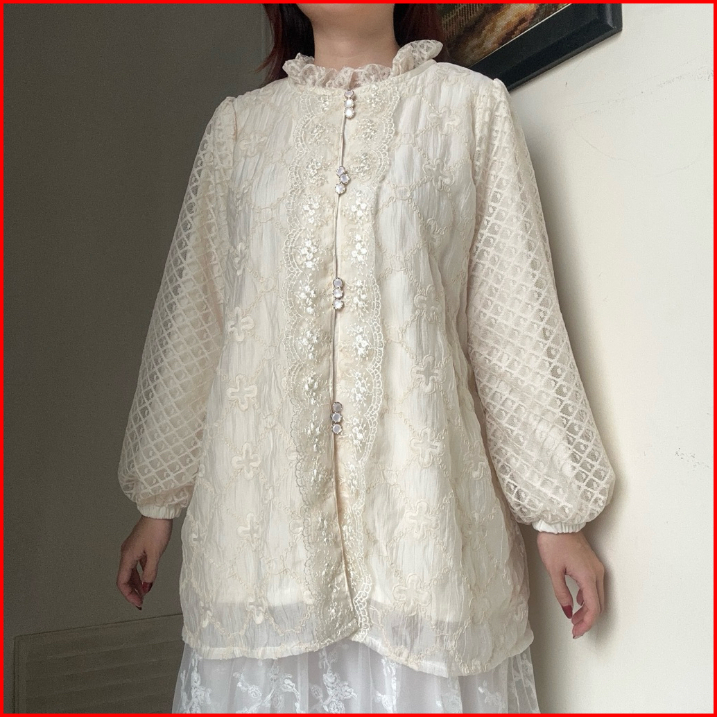 Azena Top Atasan Blouse Wanita Viral Kemeja Cantik Kerja Korean Style Renda Tensel Brokat By Biel The Label