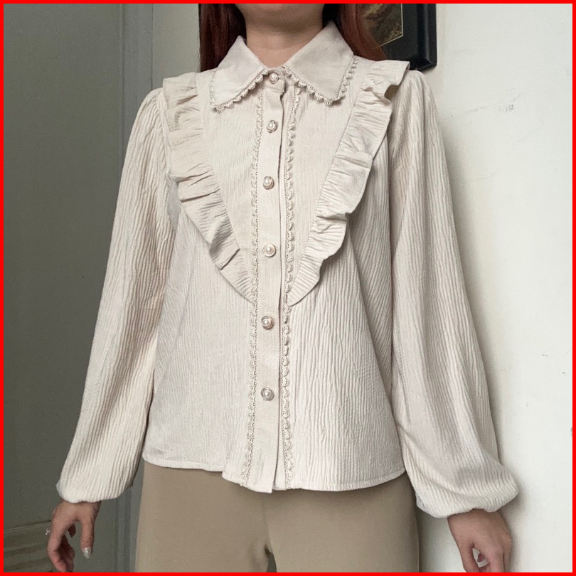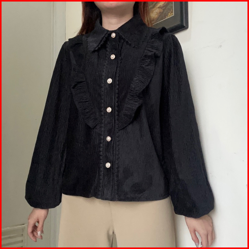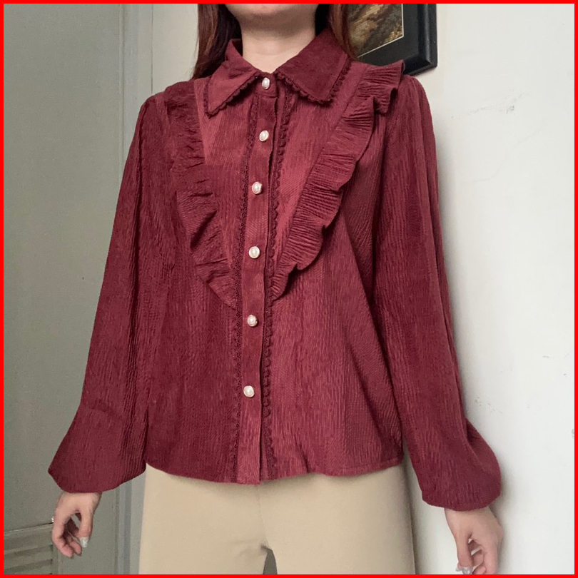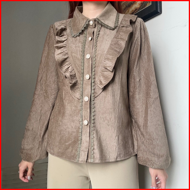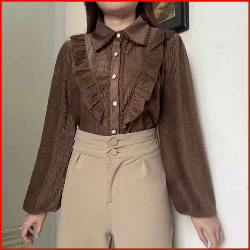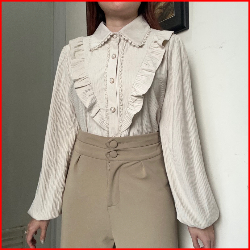 Dona Top Atasan Kemeja Blouse Wanita Corduroy Kerah Renda Katun Korean Style By Biel The Label