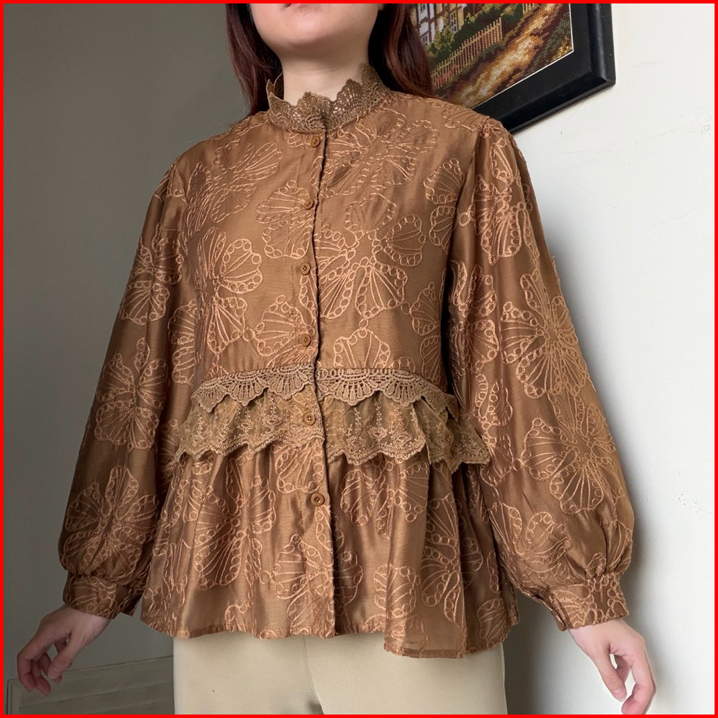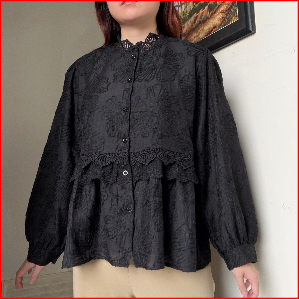 Zetta Top Atasan Kemeja Blouse Wanita Kerja Viral Korean Style Kondangan Wisuda Katun Bordir By Biel The Label