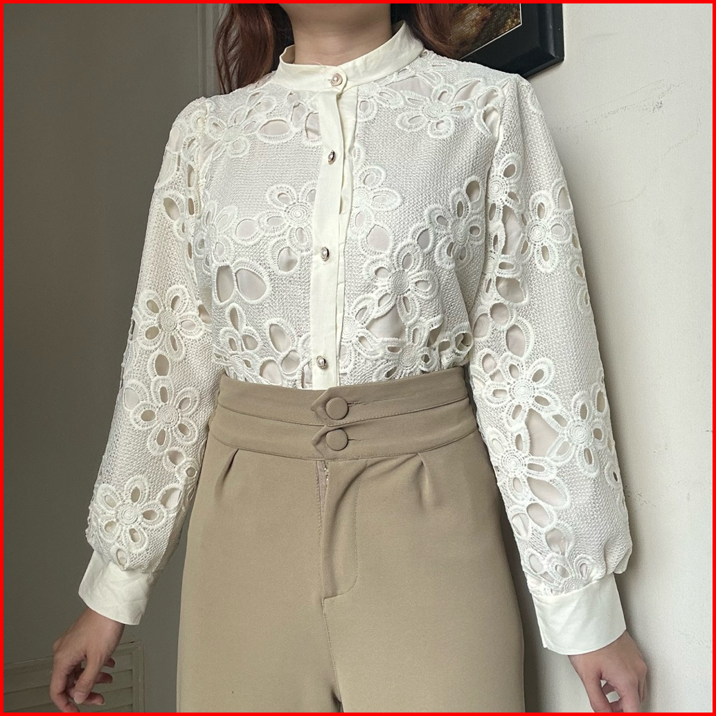 Zari Top Kemeja Blouse Atasan Katun Brokat Bordir Korean Style Wanita By Biel The Label