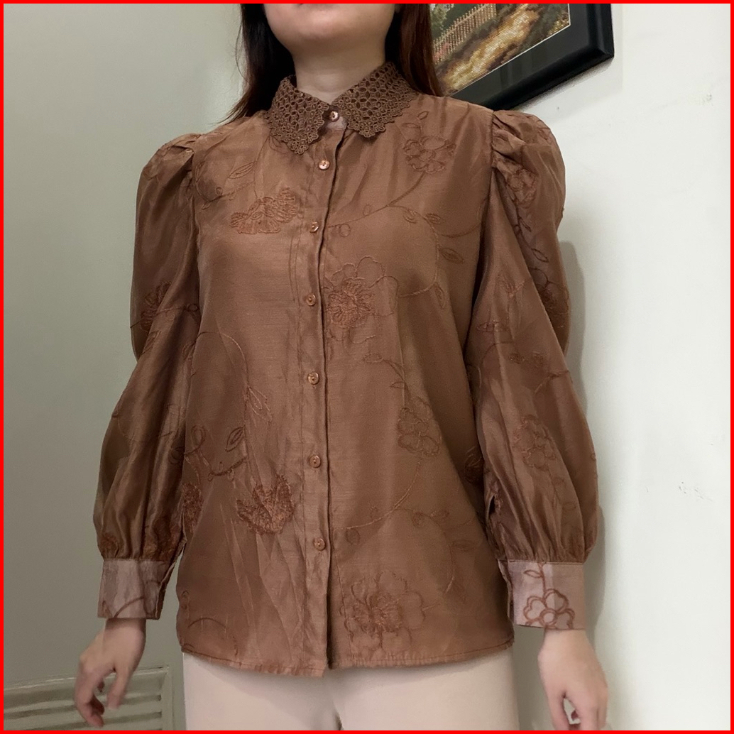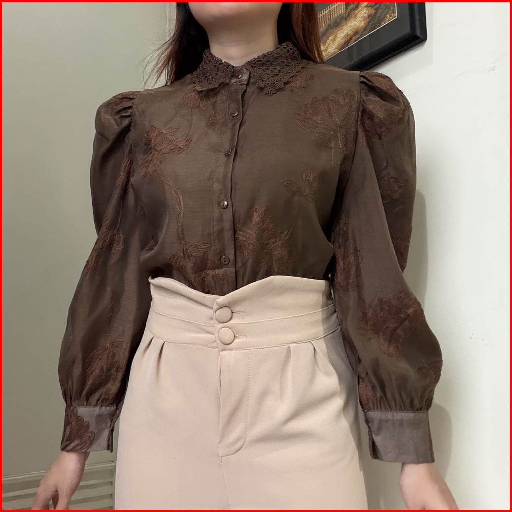 Malia Top Atasan Kemeja Blouse Wanita Katun Organdi Bordir Korean Style Kerja By Biel The Label