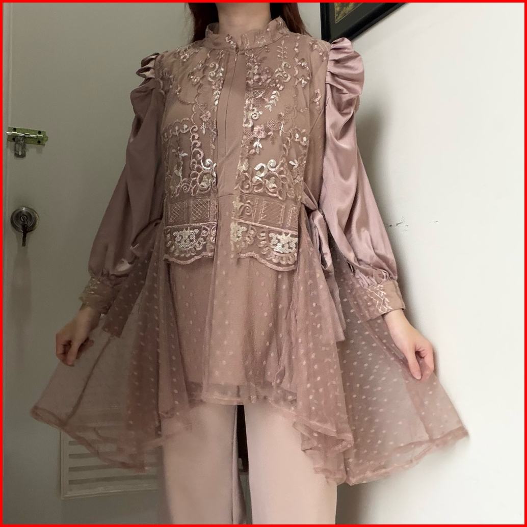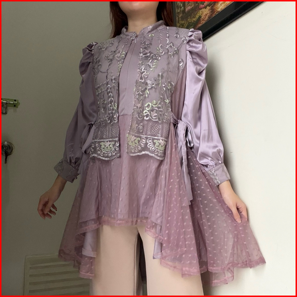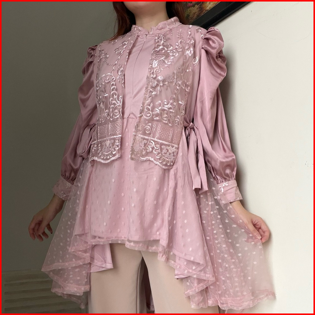 Julia Tunik Top Kemeja Blouse Atasan Wanita Viral Pesta Kondangan Wisuda Korean Style By Biel The Label