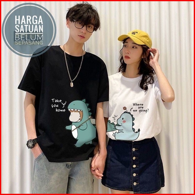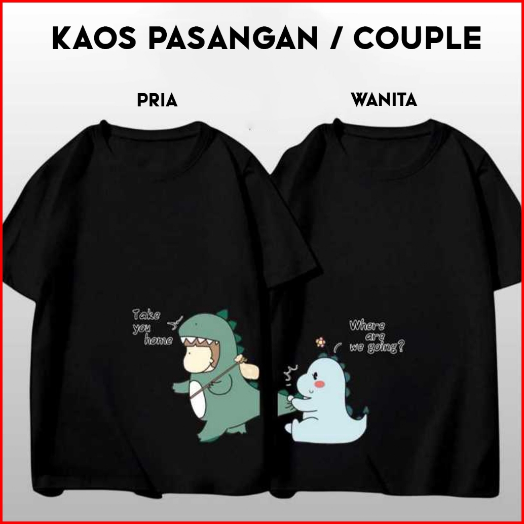 Mystique.id - Baju Kaos Pasangan Couple Dino Lucu Bisa Tambah Nama Untuk Dewasa Anak
