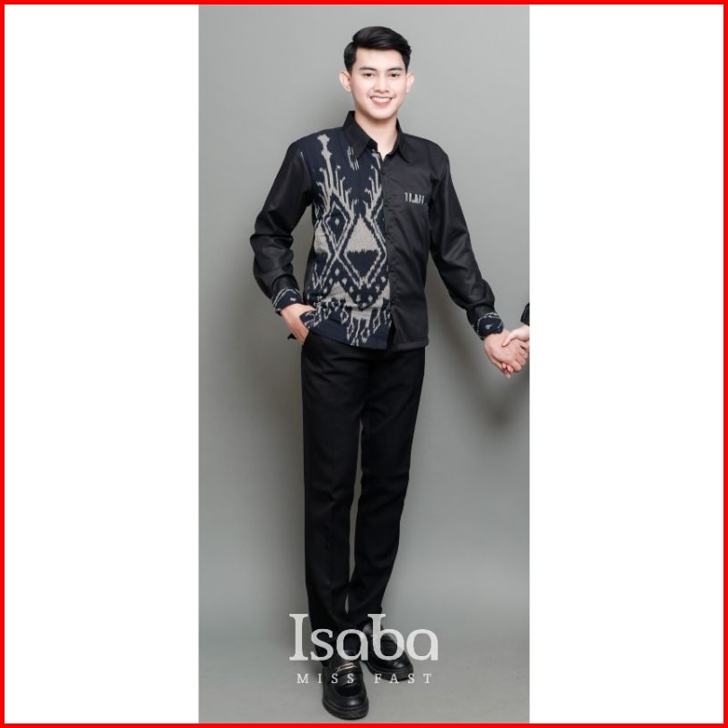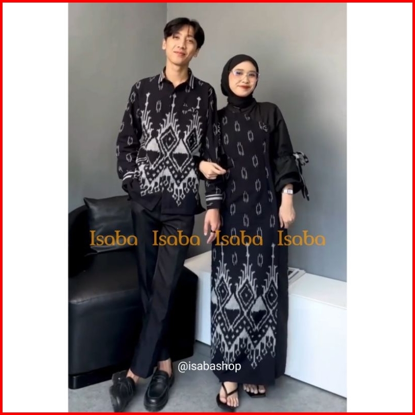 Isaba - Baju Tenun Couple - Couple Dress Azella Black - Baju Couple Lebaran Pasangan Modern