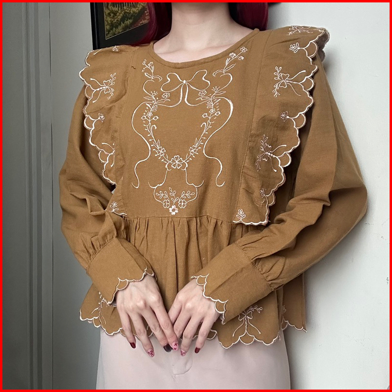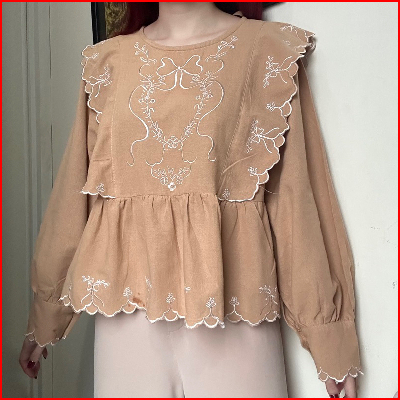 Elisa Top Bkk Atasan Kemeja Blouse Wanita Linen Bordir Korean Style By Biel The Label