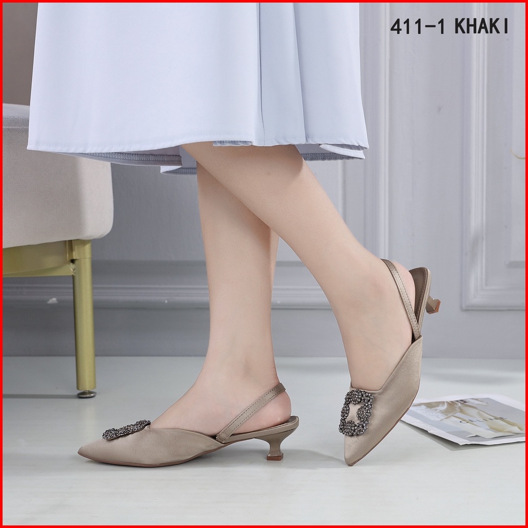 Carleslevin Cl 411-1 Sepatu Wanita Hak Chunky Heels Slingback Import Nyaman Di Pakai