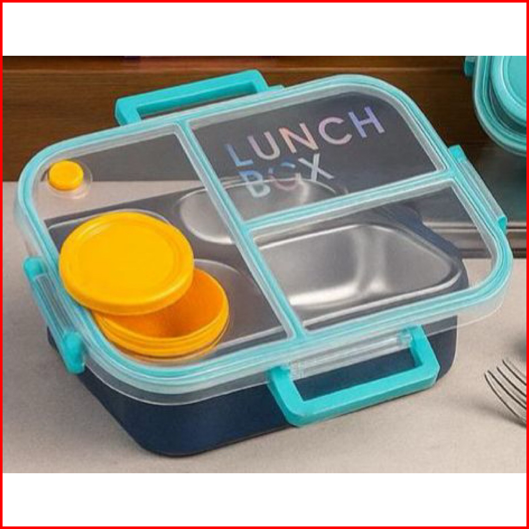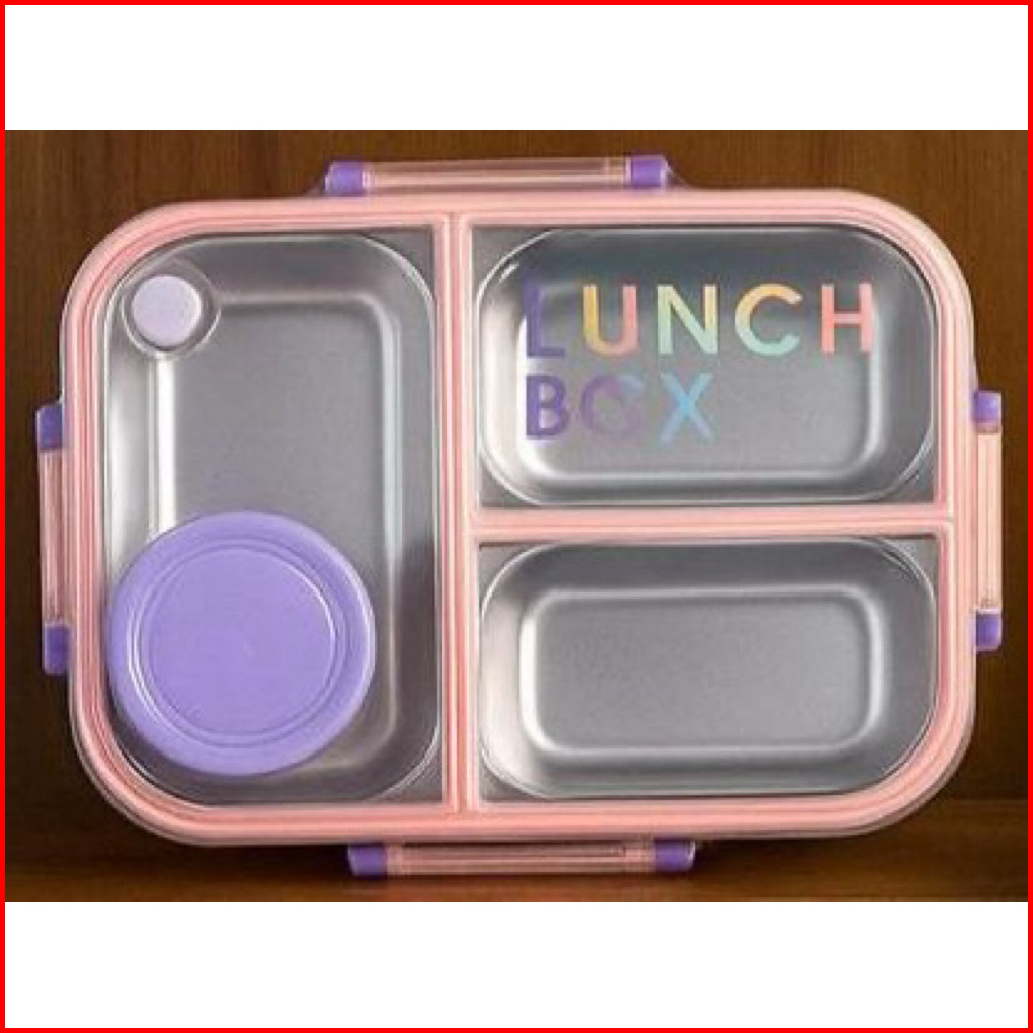 Lunch Box Kotak Makan Stainless Steel Sus 304 Tempat Saus Anti Tumpah Tiga Sekat