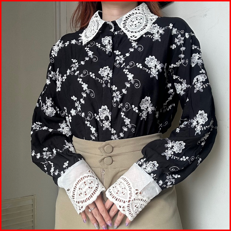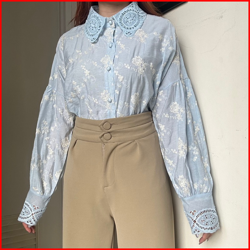 Ghani Top Atasan Kemeja Blouse Wanita Katun Bordir Korean Style By Biel The Label