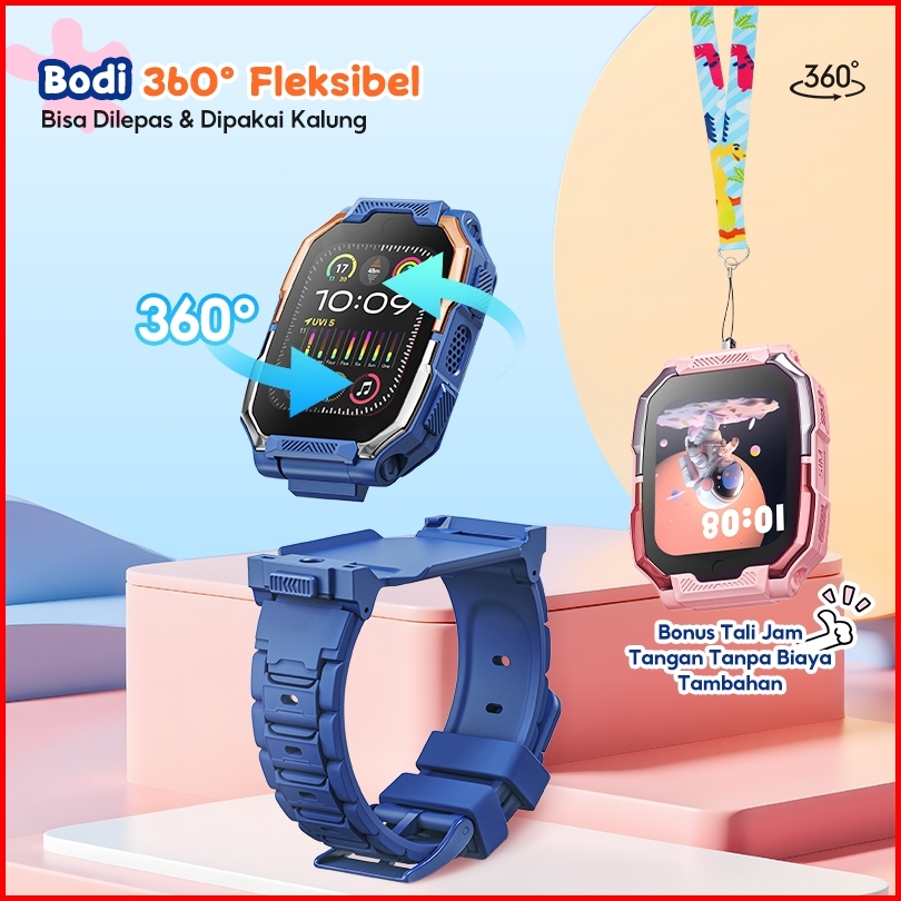 Kiumo Smartwatch Anak 4g Wifi Kamera Ganda Ip67 Anti Air Kids Gps Position Watchphone