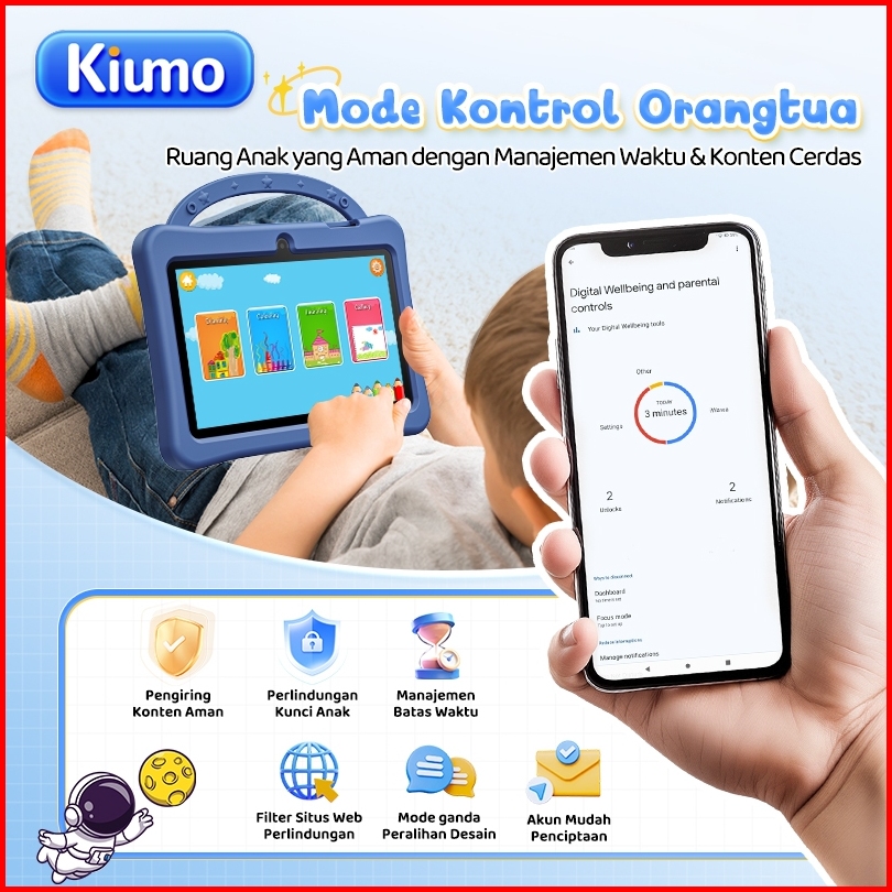 Kiumo Tablet Anak Android Untuk Belajar K7 Pro 4gb 128gb 7 Inch Android 13 Kontrol Orang Tua Wawa Kamera Ganda Baterai T