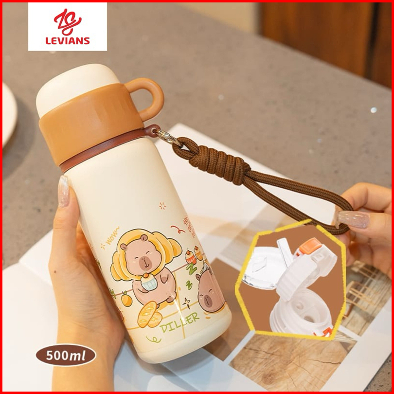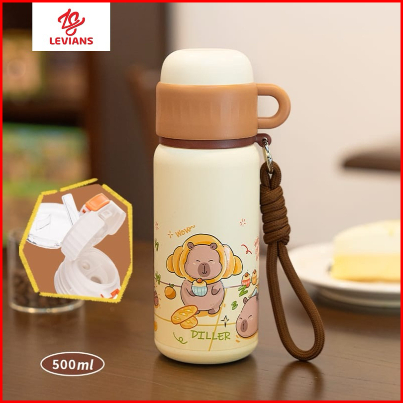 Termos Tumbler Stainless 316 Capybara Tutup Cangkir Aesthetic Tahan Panas Dingin 500ml 2in1 Anti Slip