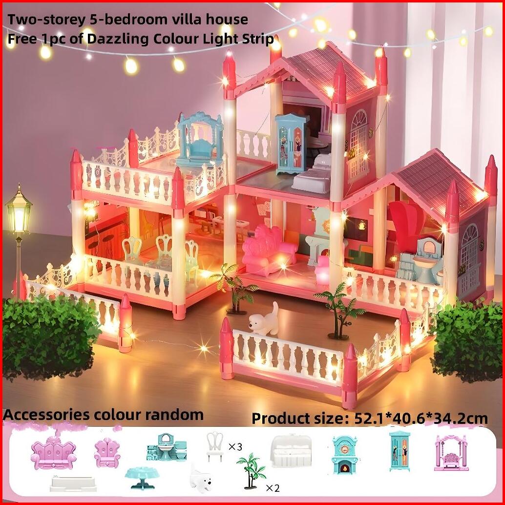 Kiumo Mainan Anak Perempuan Mainan Putri Rumah Kastil Dengan Boneka Ringan Mainan Diy Vila Putri Hadiah Ulang Tahun Anak