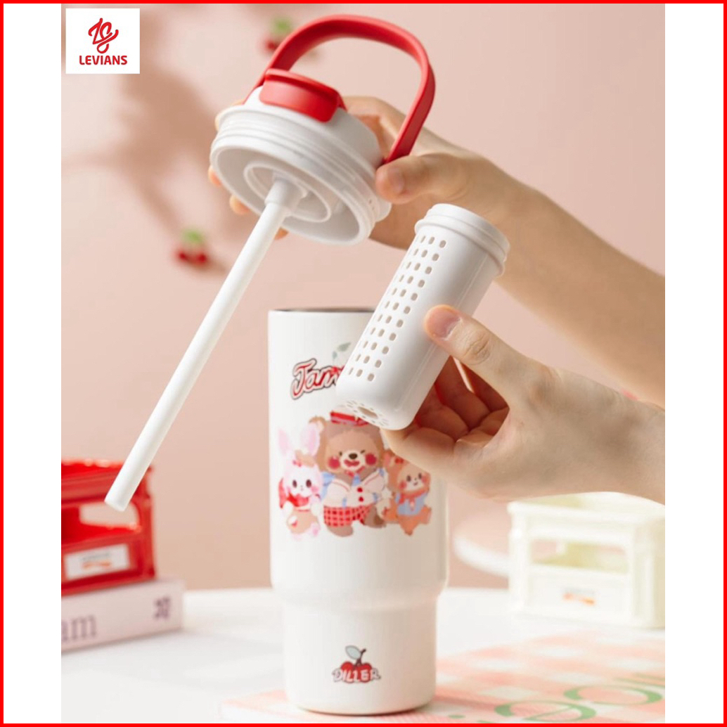 New Tumbler Cherry Bear Stainless 316 Tahan Panas Dingin Dual Drink Tea Infuser 920ml