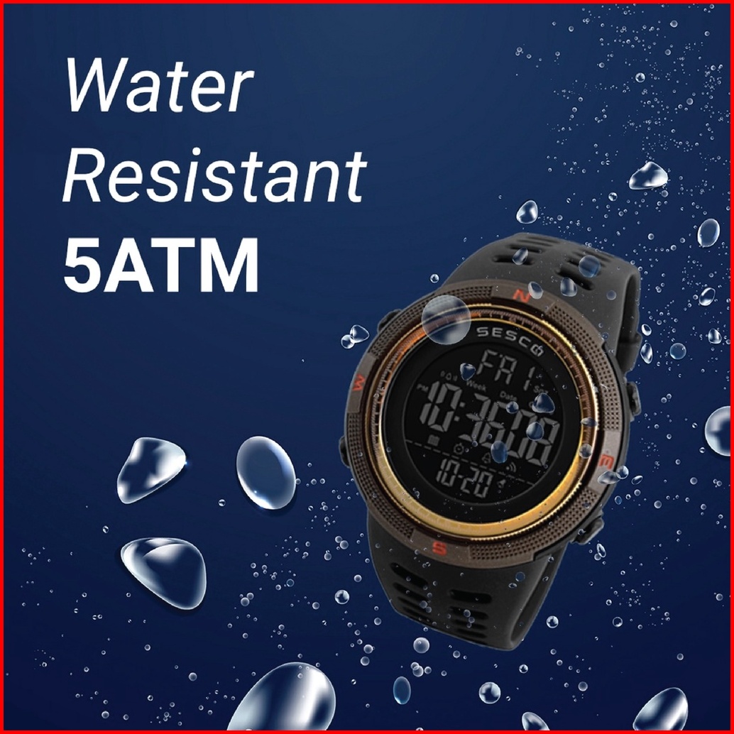 Sesco 9100 Jam Tangan Pria Cowok Digital Anti Air Original Dengan Tali Karet