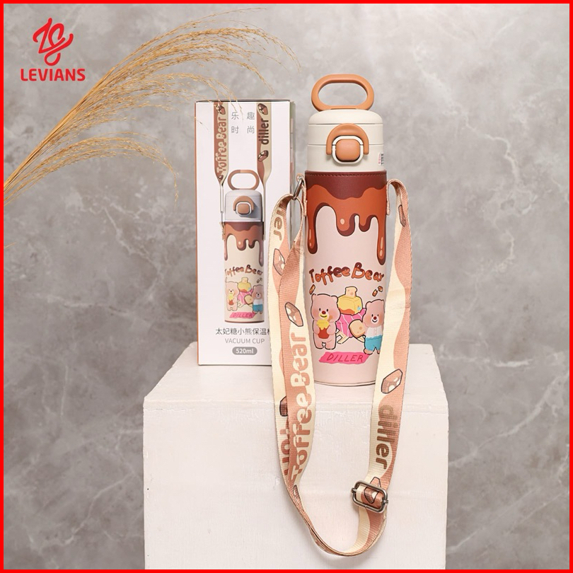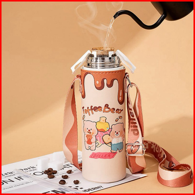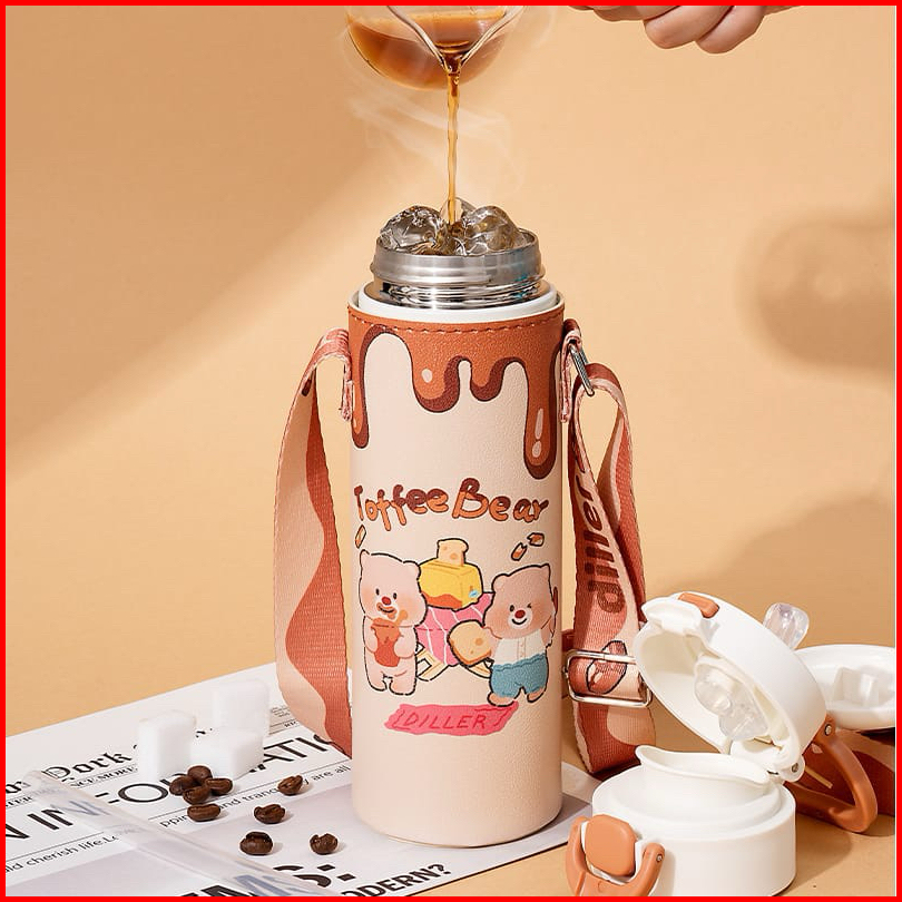 Tumbler Stainless Botol Minum Dilengkapi 2 Cara Minum Sedotan Dan Teguk Toffee Bear 520ml Stainless Steel Sus 316 Anti S