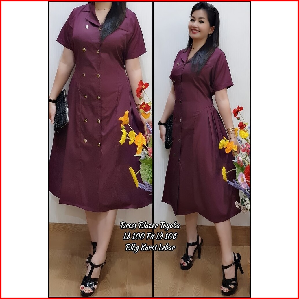 Jess Dress Midi Korea - Dress Blazer Wanita - Dress Pesta - Dress Formal - Dress Toyobo Katun Jepang