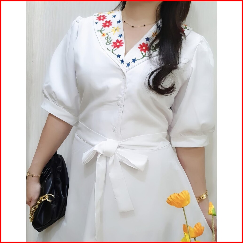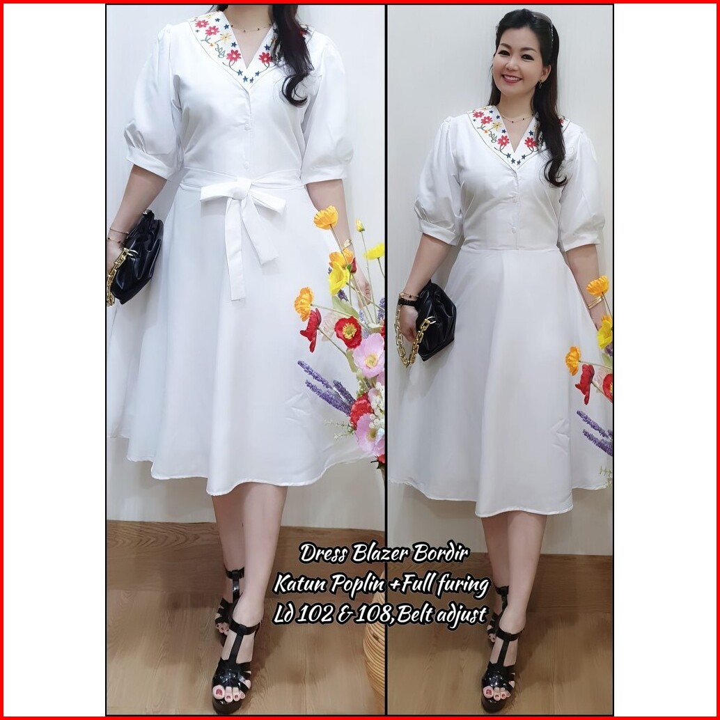 Jess Dress Blazer Putih Bordir - Midi Dress - Dress Korea - Dress Casual Formal Pesta