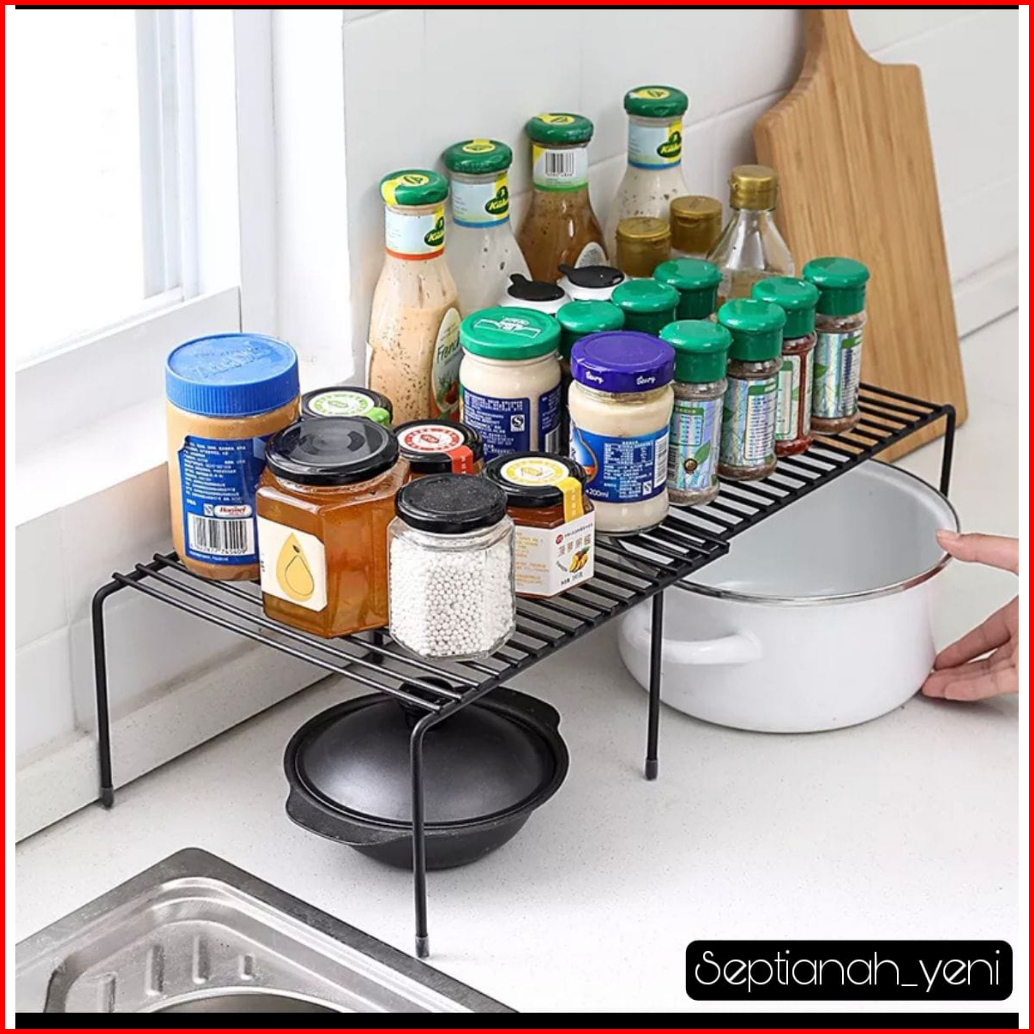 Rak Susun Satuan Double Kitchen Flexible Storage Dapur Rak Besi Tarik Multifungsi
