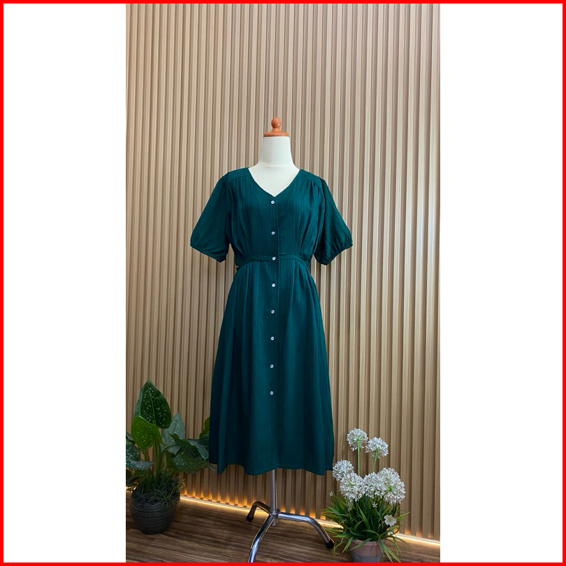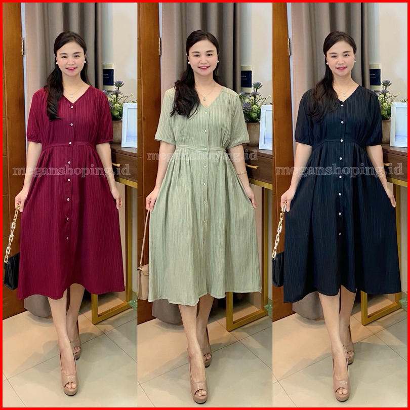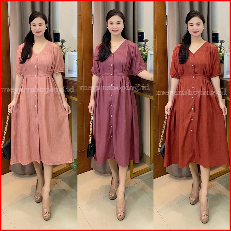 Meganshoping - Tina Dress Midi Button Baju Casual Formal Kancing Depan Korea Look Fashion Wanita
