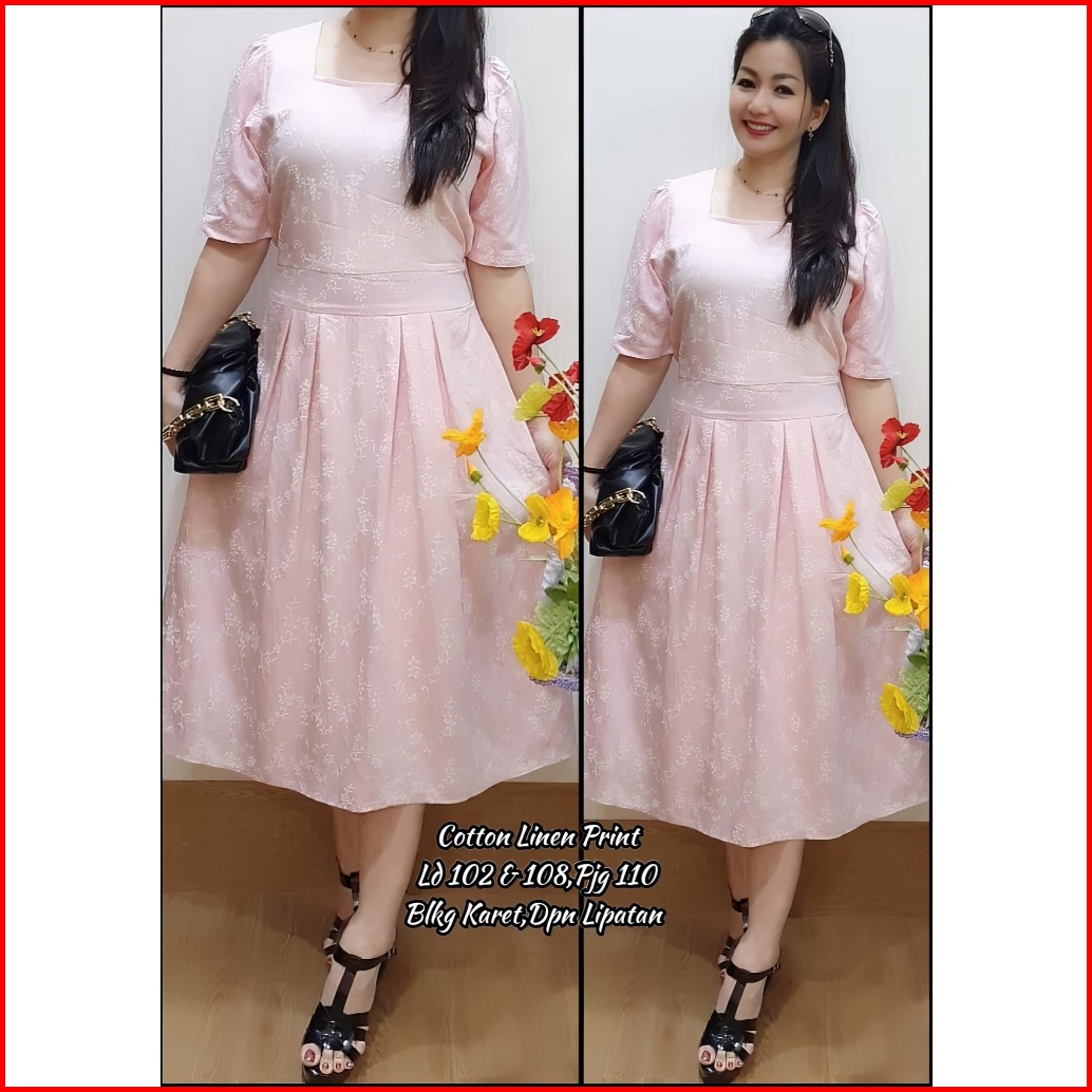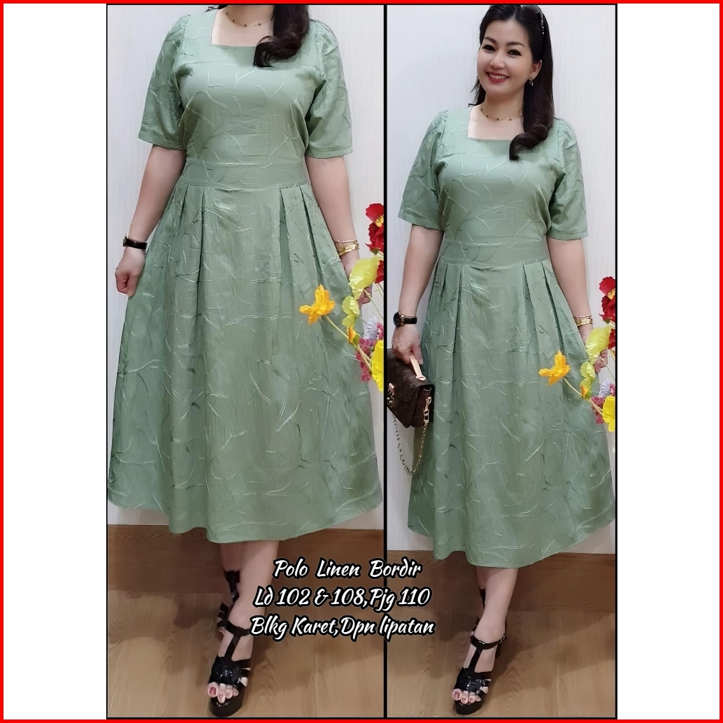 Jess Dress Polo Linen - Dress Bordir - Dress Midi - Dress Korea - Gaun Wanita - Gaun Casual