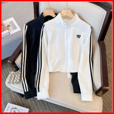 Sweater Tracktop Crop Premium Quality Hitam Polos Jaket Sweater Wanita Kepala Sletting Double Bordir