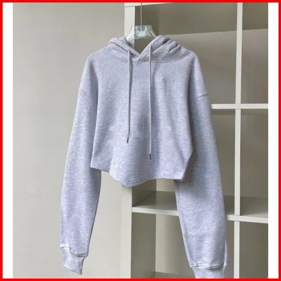 Sweater Hoodiea Crop Oblong Wanita Bahan Fleece Premium Model Kekinian Korean Style Attar Style