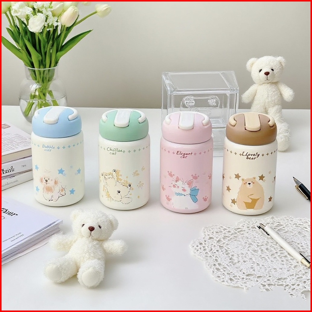 Premium Tumbler Termos Hscup 260 Ml 360 Ml Botol Minum Sedotan Dengan Handle Vacuum Cup Insulated Bottle Hot Cool Stainl
