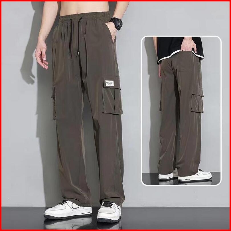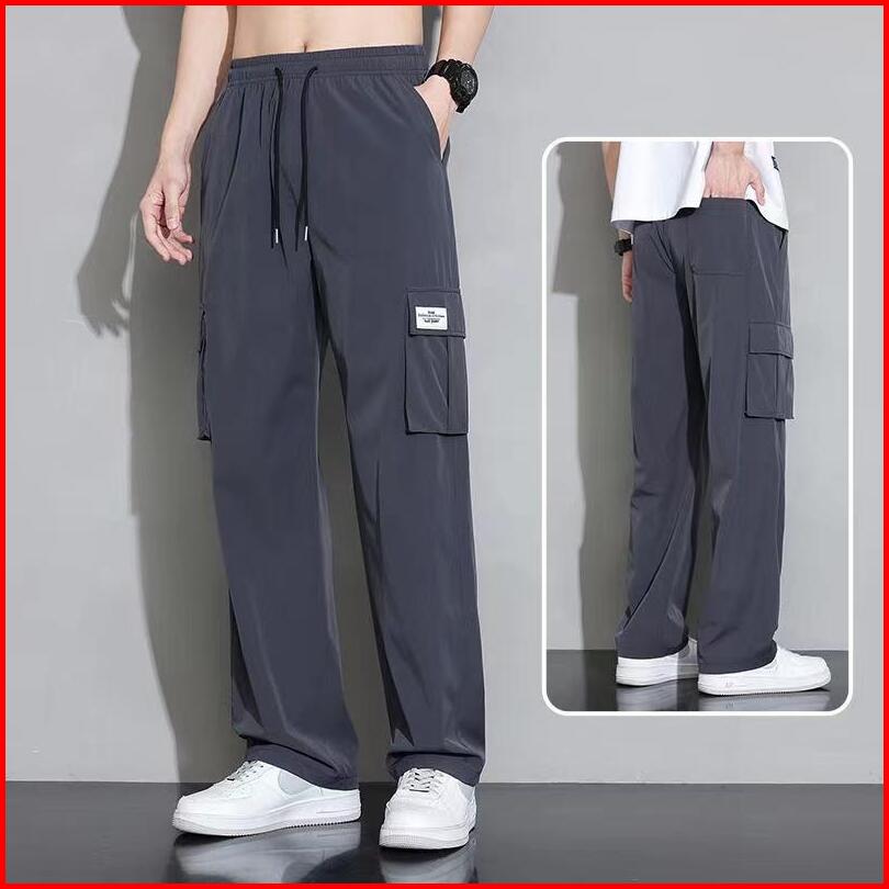 Keyboy Celana Cargo Panjang Cowok Celana Kulot Pria Abu Grey Baggy Pants Casual Sutra Es Kargo Korean Style
