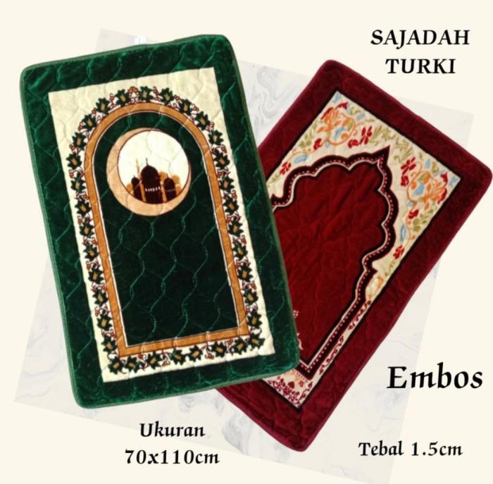 Promo Sajadah Turkey Busa Tebal Lembut Empuk Import Premium Ukuran 110x70 cm - Hijau random Keren