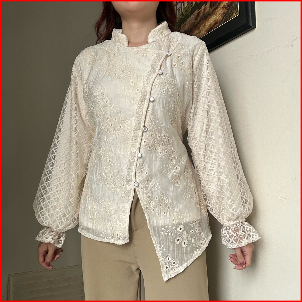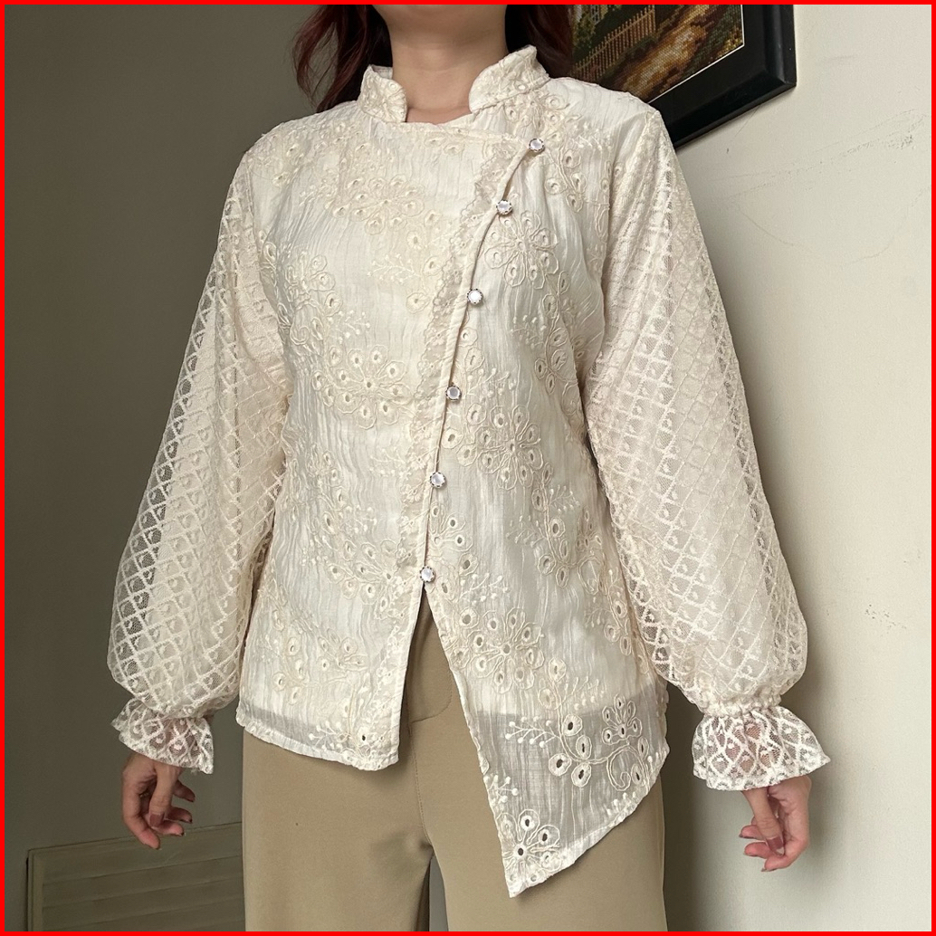 Ismaya Top Kemeja Atasan Blouse Wanita Kerja Atasan Tensel Katun Brokat Bordir Korean Style By Biel The Label