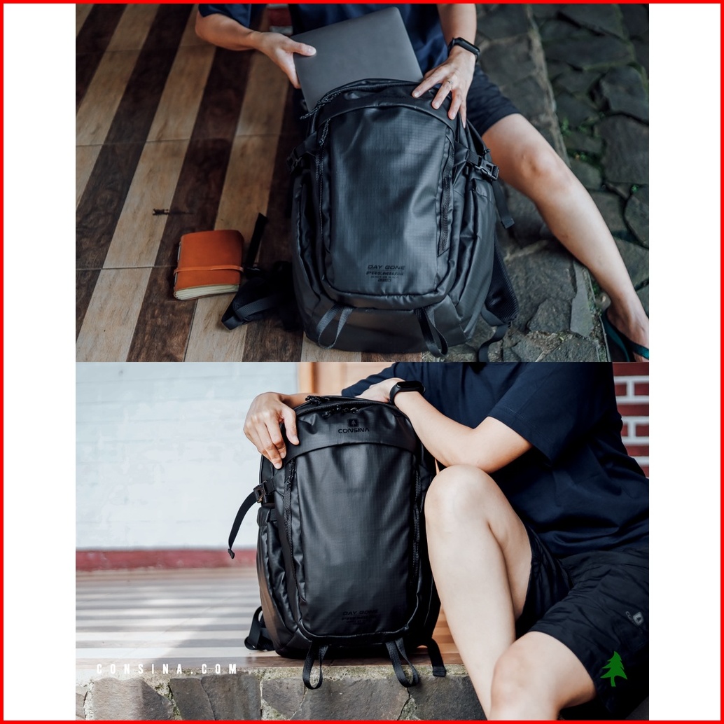Consina Day Gone Ransel Backpack Laptop Office Premium Black On Black Edition