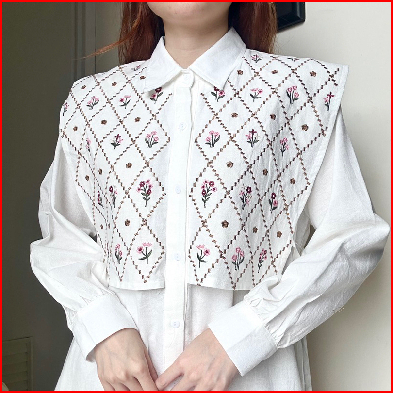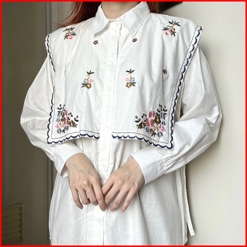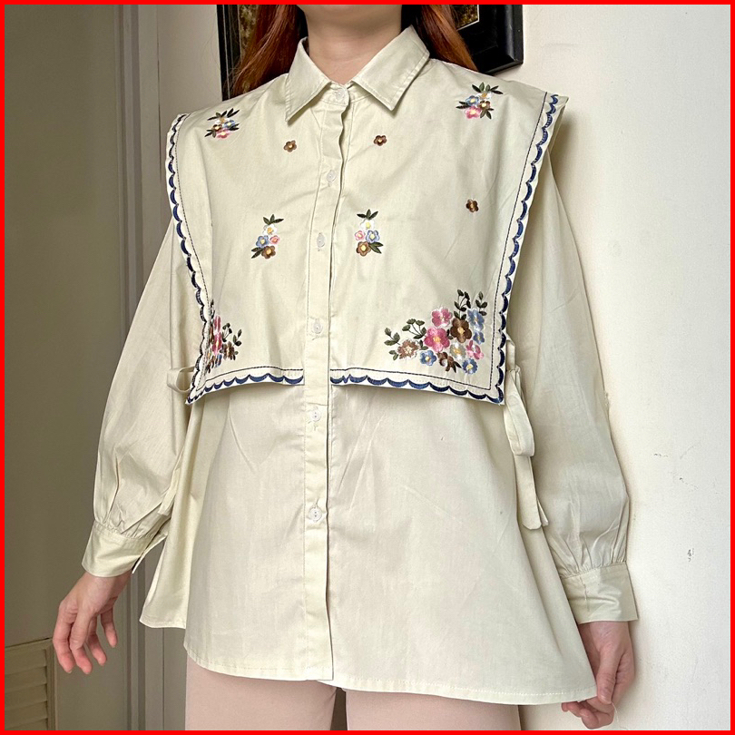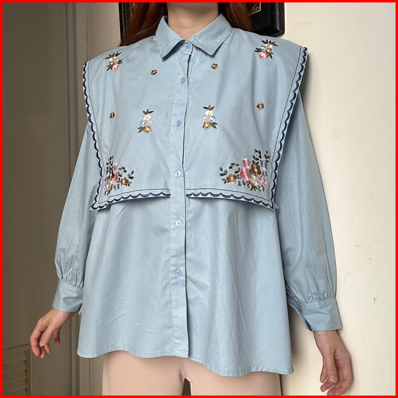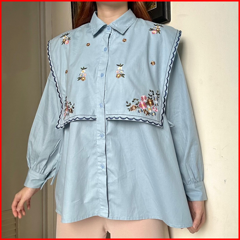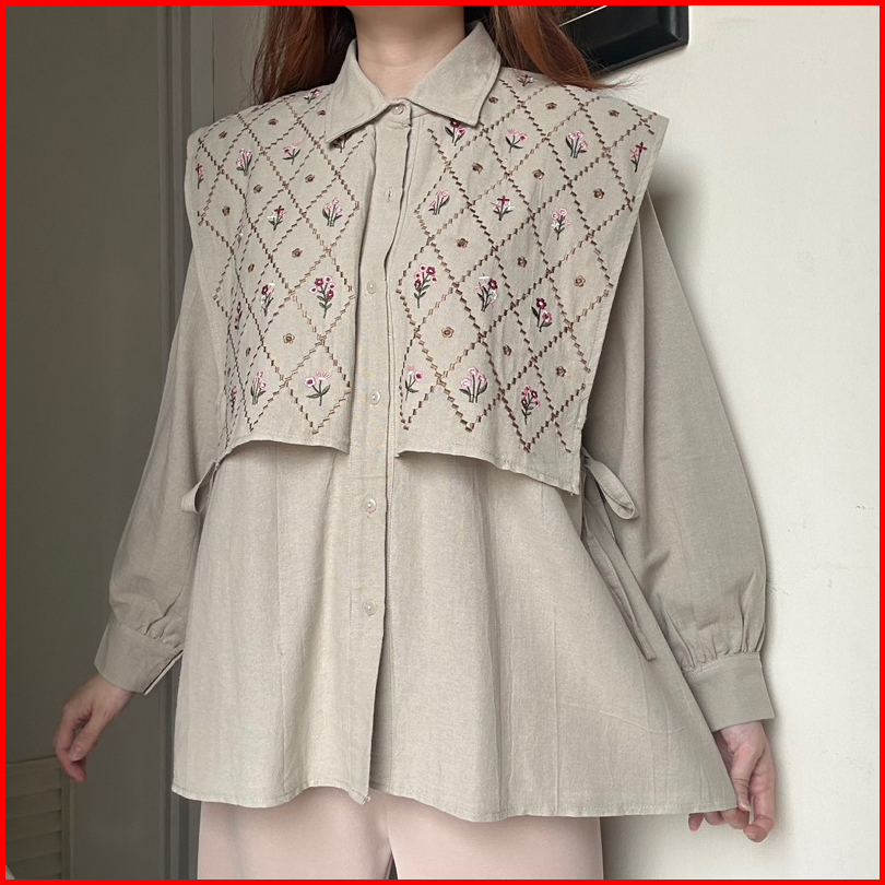 Malika Top Atasan Kemeja Blouse Wanita Kerja Katun Bordir By Biel The Label