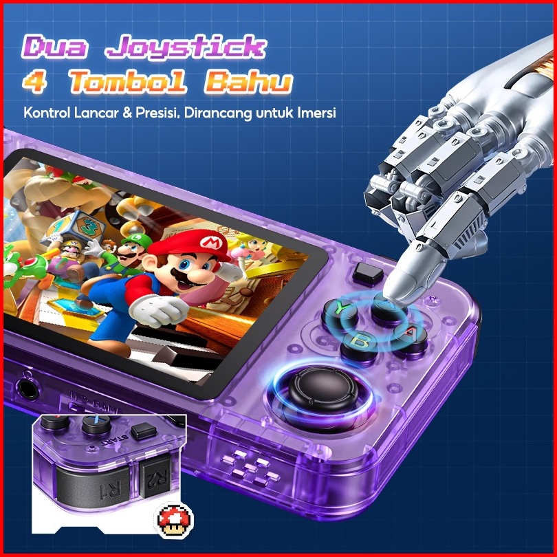 Kiumo Game Bot Retro Game Console R36h Game Boy 3.5 Ips 128gb 20.000 Game Emulator Ps1 N64 Gba Psp Baterai 3000mah