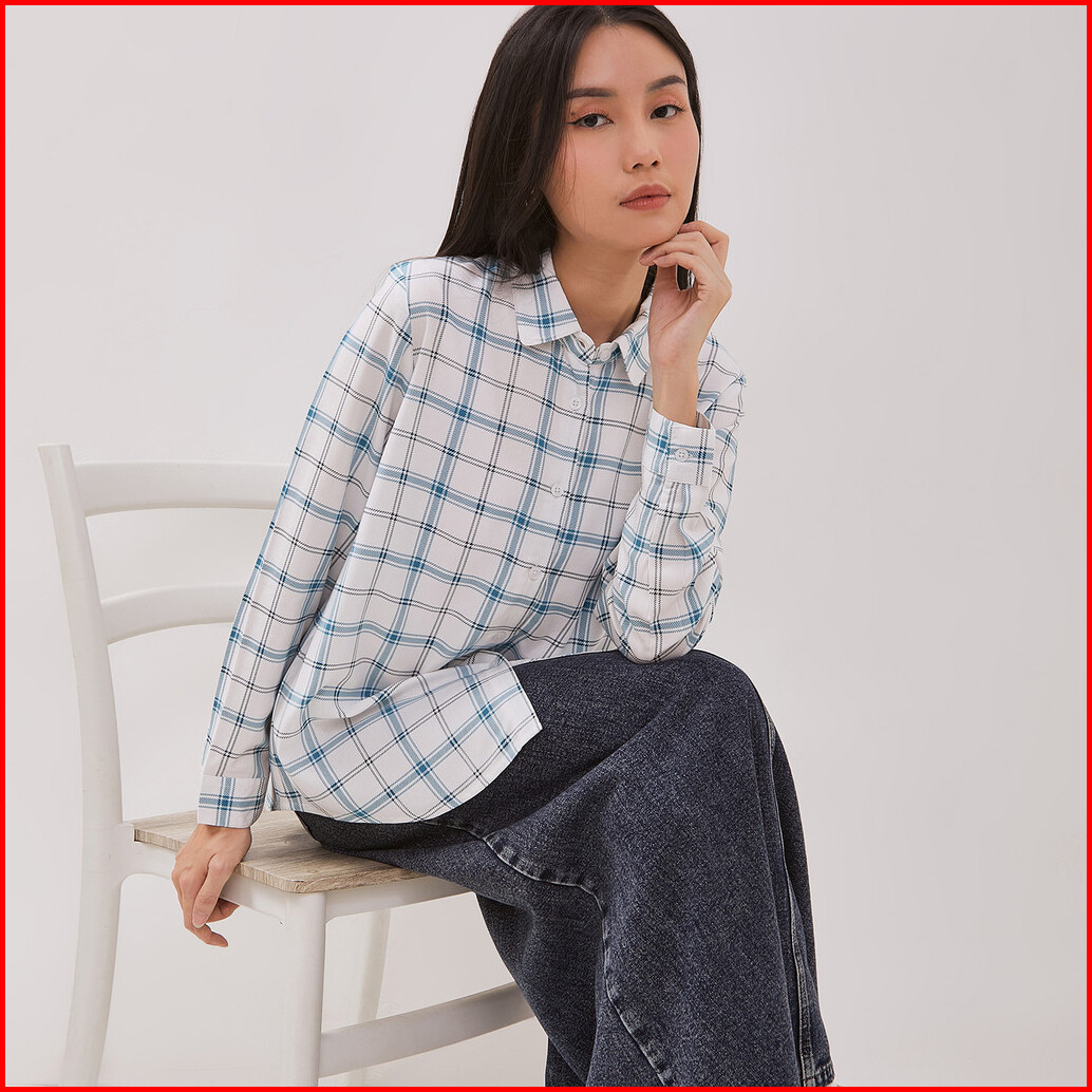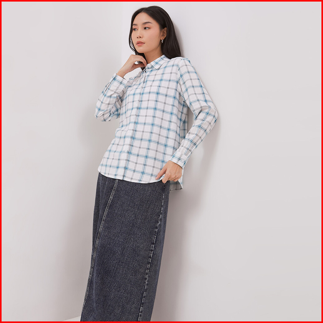 Dust Kemeja Kotak Rumika Putih Biru Ecovero Comfease D.116479