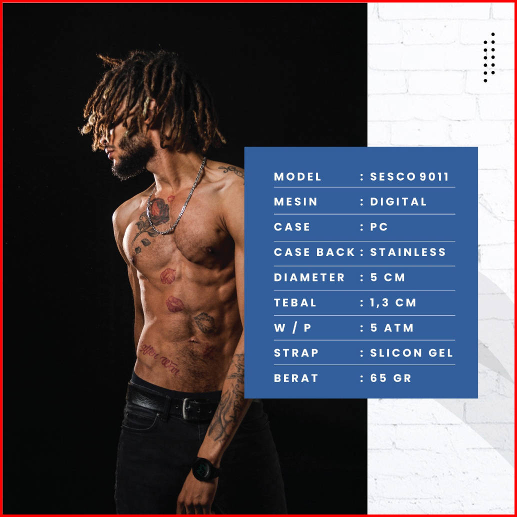 Sesco 9011 Jam Tangan Pria Cowok Digital Anti Air Original Dengan Tali Karet