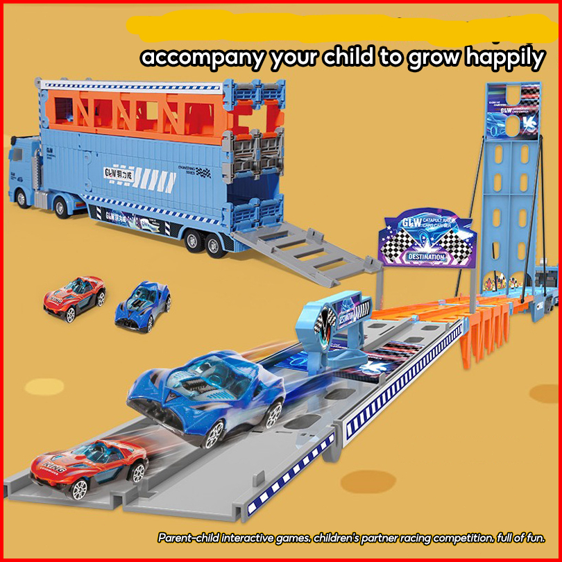 Kiumo Mobil Mainan Anak Laki Laki Ejection Track Container Car 201cm Container Toy Car Mobil Teknik Hadiah Ulang Tahun A