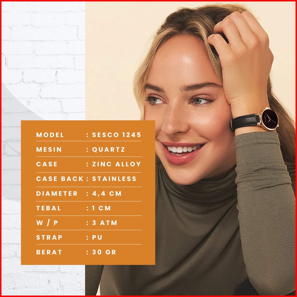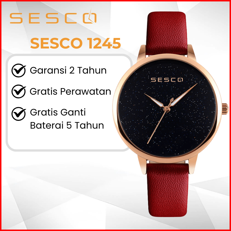 Sesco 1245 Jam Tangan Wanita Cewek Analog Anti Air Original Dengan Tali Kulit